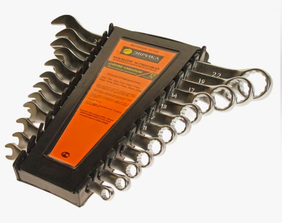 Набор ключей комбинированных 6-22мм (12 предм.) изгиб 15град. в холдере сатинированные ЭВРИКА ER-31122